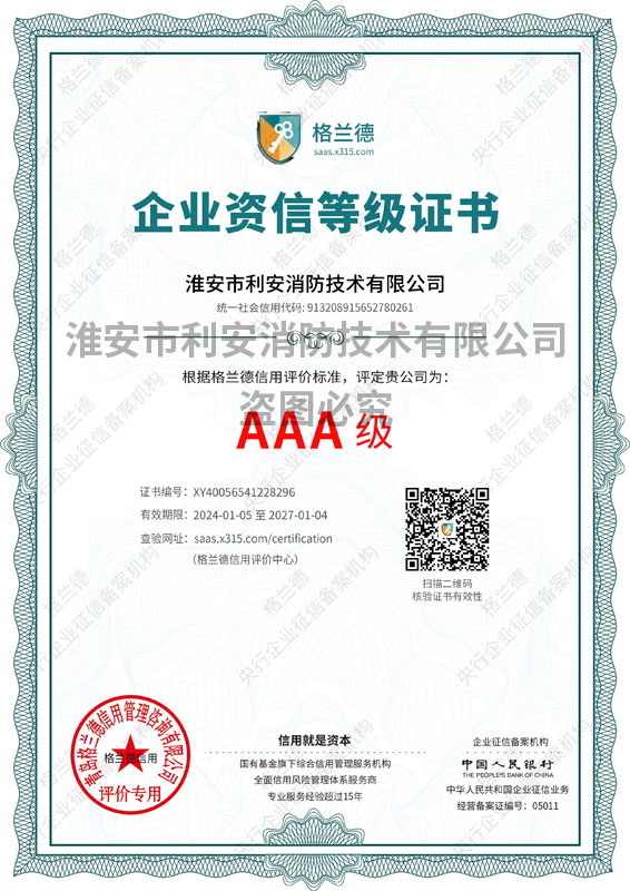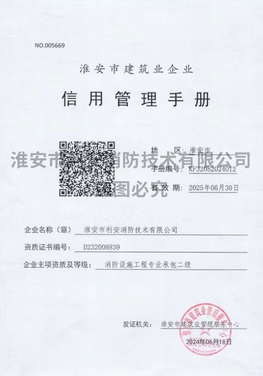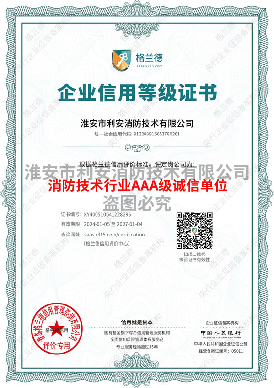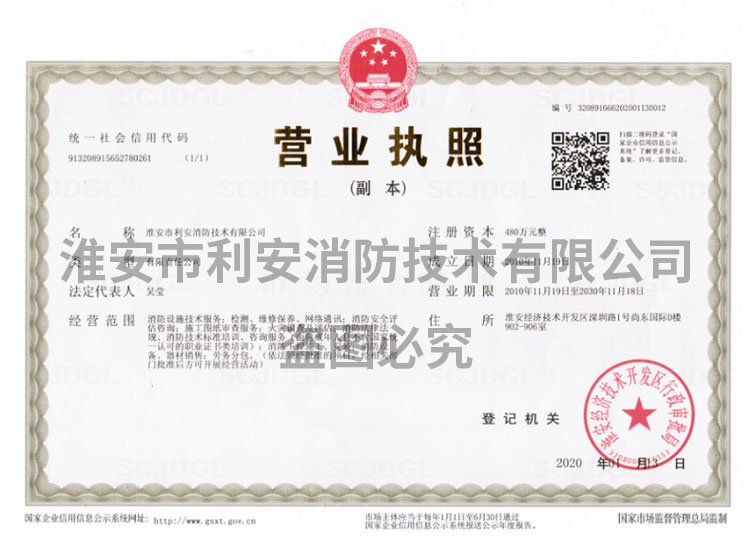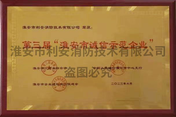 | 熱烈祝賀淮安市利安消防技術有限公司榮獲“淮安市第二屆誠信示范... | [2020-8-6] | ||